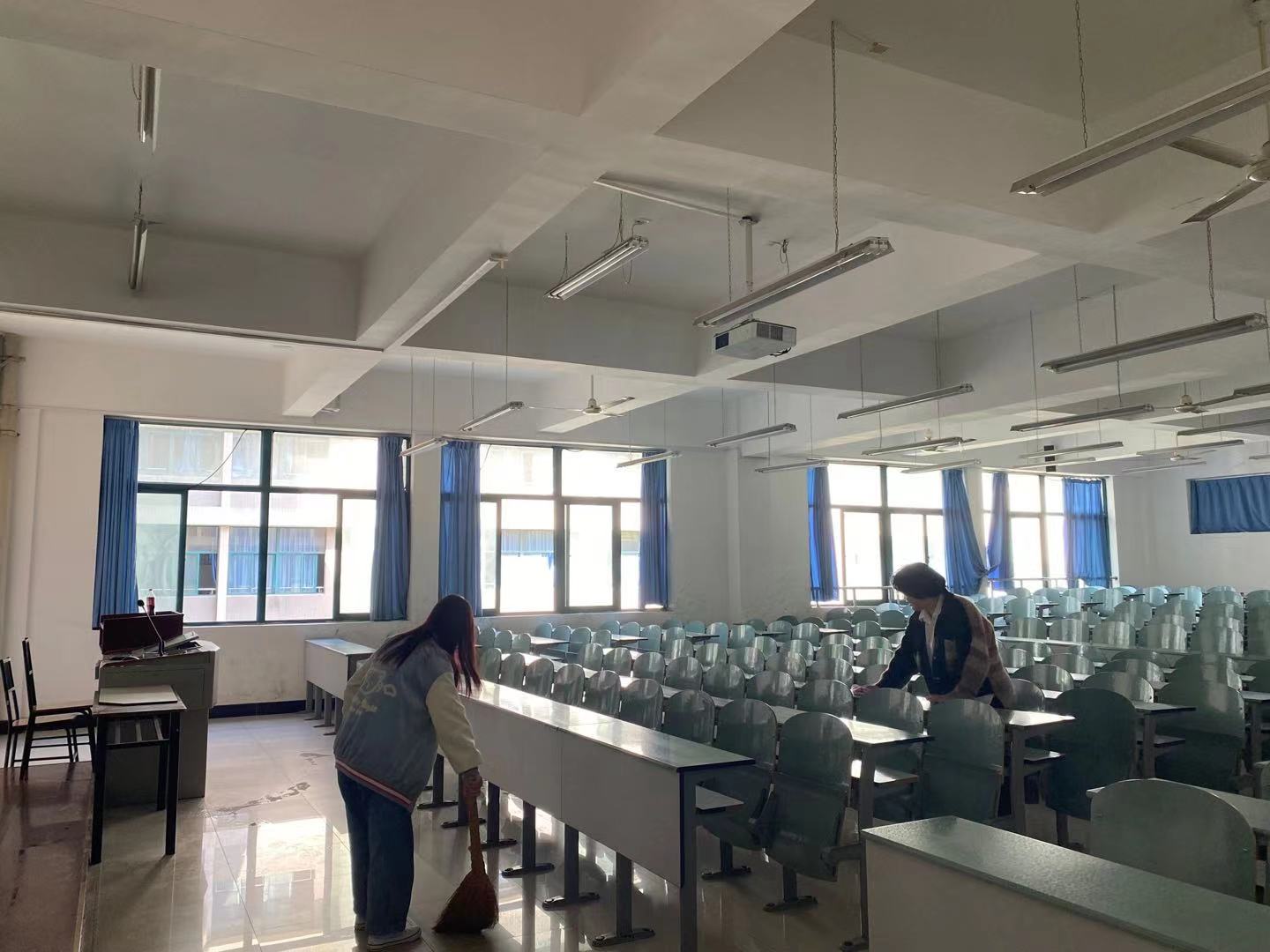 (装饰艺术学院 许倩讯)天气转晴,气温越来越高,为了营造更好的学习和生活环境,我院组织同学们开展了卫生大扫除活动。同学们自发组织、分工有序,全身心投入到劳动中来,有的用扫帚打扫路道,有的清理草坪上的垃圾,有的负责寝室环境的整理。结束打扫后,同学们的学习生活环境恢复了洁净,焕然一新。