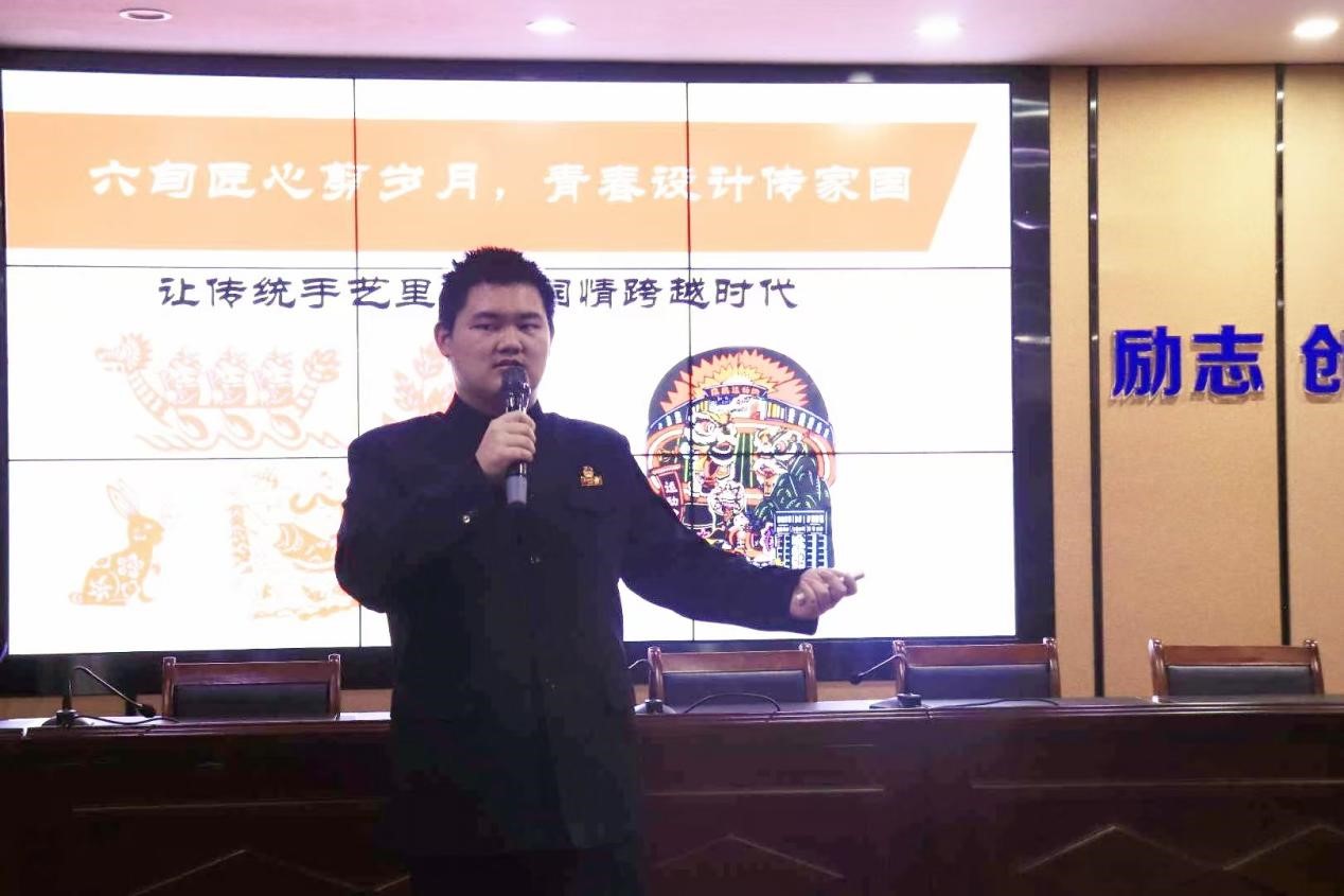 广告二班胡兴泉同学则凭借极具个人风格的演讲脱颖而出,他以《以设计为笔,绘就爱国青春》为题,将专业特色与文化传承相结合,用真诚的态度与饱满的热情打动在场每一个人,最终荣获三等奖。